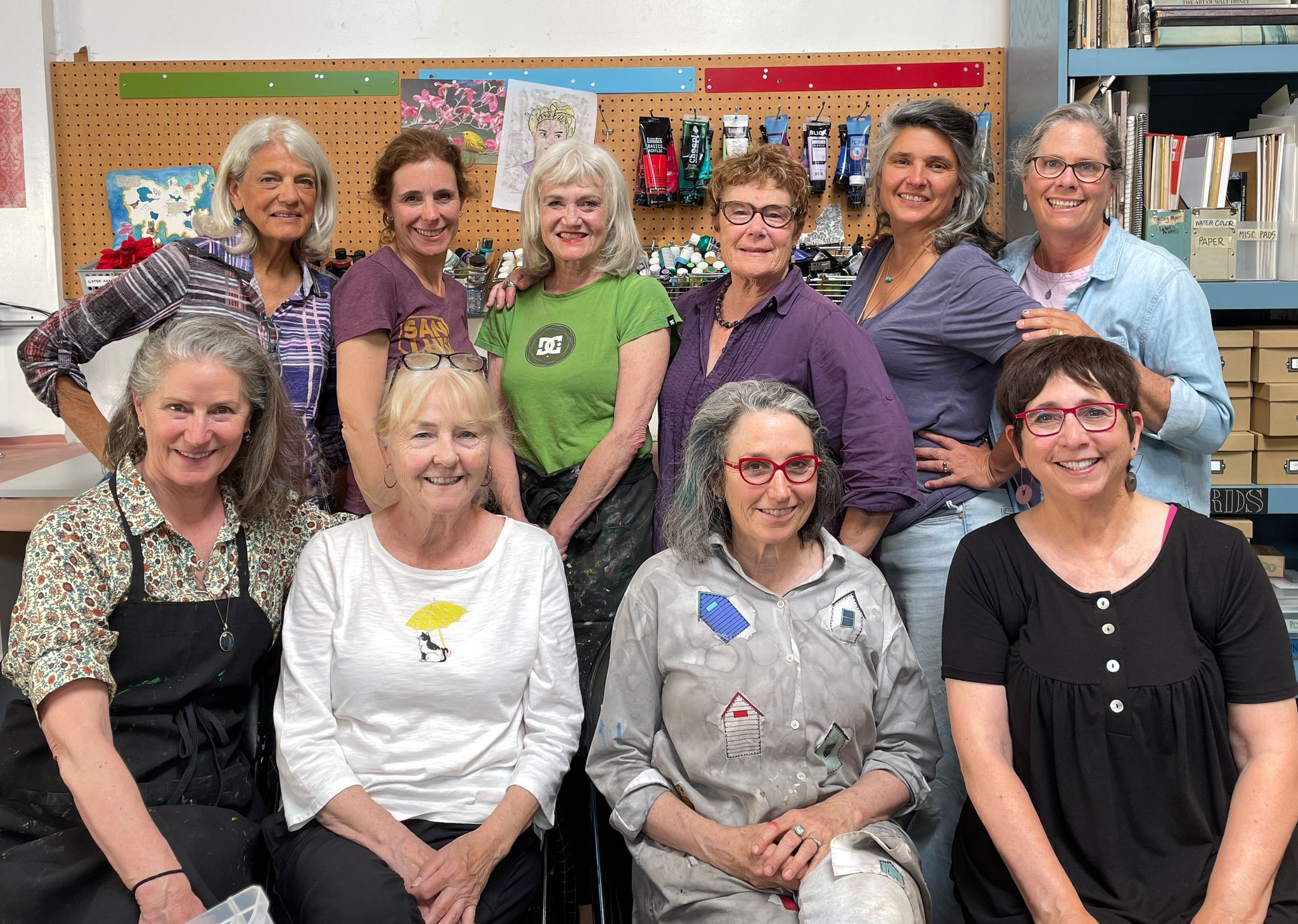 Studio 64’s genesis, in the fall of 2014, arose from the desire of a group of women who wanted to come together to create art in community. We think of ourselves as a collective of artists and makers. Our diverse interests range from painting, to book binding, to mosaic, to fiber arts to paper crafts. We meet weekly as a group in our 1000 square foot rented warehouse studio space in San Rafael, CA to imagine, create, laugh, and make the world a better place.