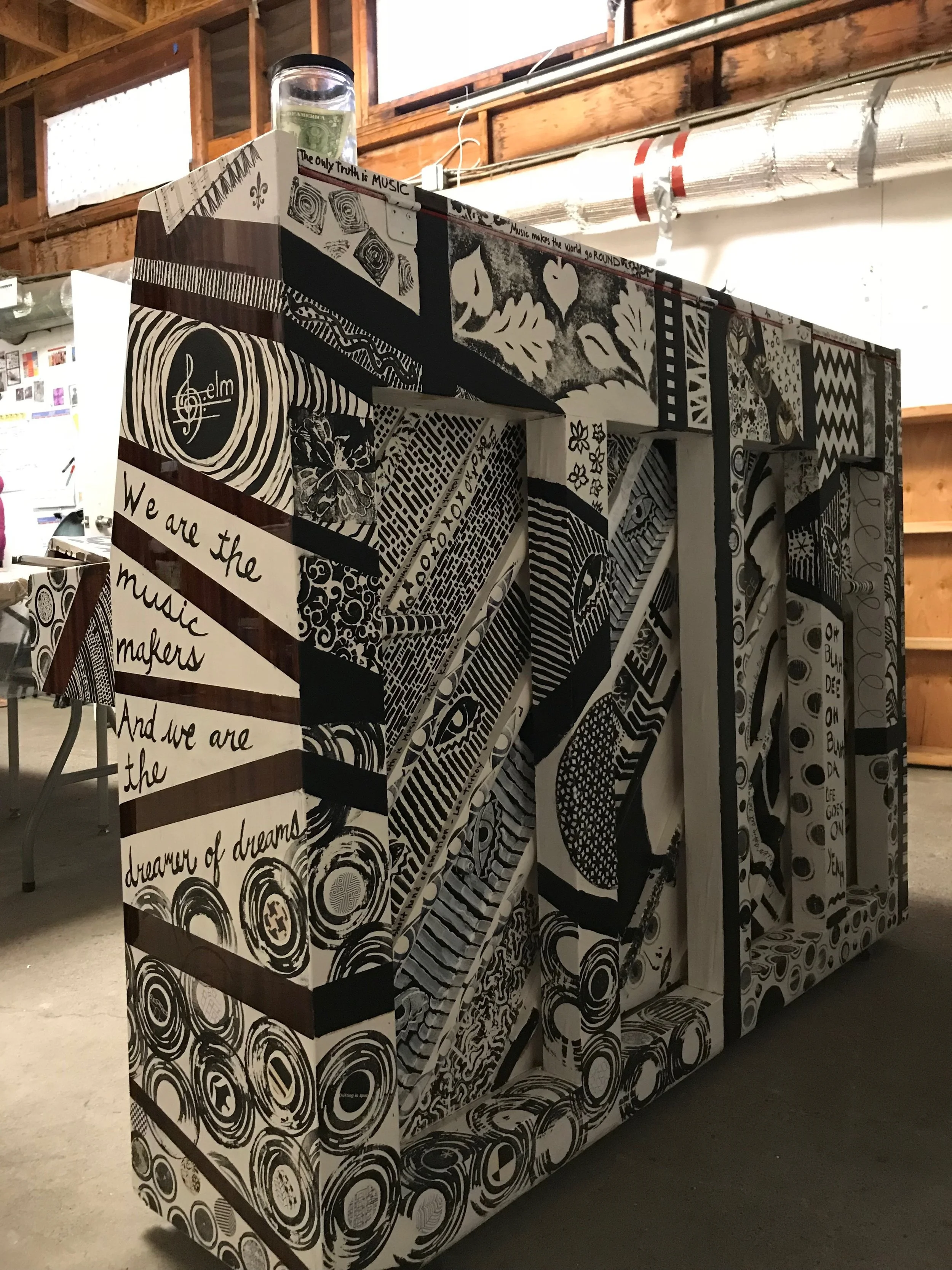 Studio 64 Marin was enlisted to paint a piano by the organization ELM Program in San Rafael. An unadorned piano was delivered to our studio and we first masked and primed then painted it. The piano will be released into San Rafael at some future date for Play Me San Rafael.